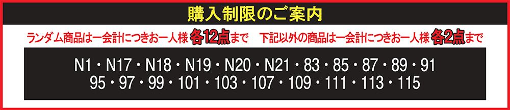 - 商品により一会計毎のご購入数制限を設けております。下記をご確認ください。